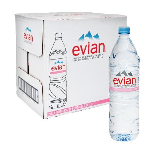 $7 Evian natural spring water 12 × 1.5 L