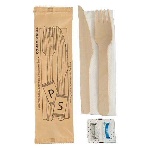 $5 iECO individually wrapped 5-piece birch cutlery kit pack of 250