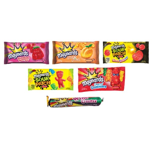 $5 Maynards Wine Gum, Sour Patch Kids, Swedish Berries, Sour Patch Kids Cherry Blasters or Fuzzy Peach candy gummies 18 × 44 g, 18 × 60 g or 18 × 64 g